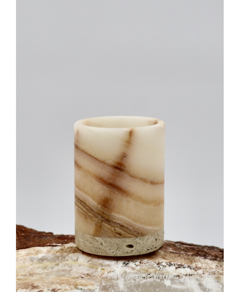 An onyx candle is a luxurious and stylish decorative item that catches the eye with its natural beauty and unique stone pattern. Onyx, known for its characteristic layers and translucency, perfectly diffuses the light of the flame, creating a warm, atmospheric aura.