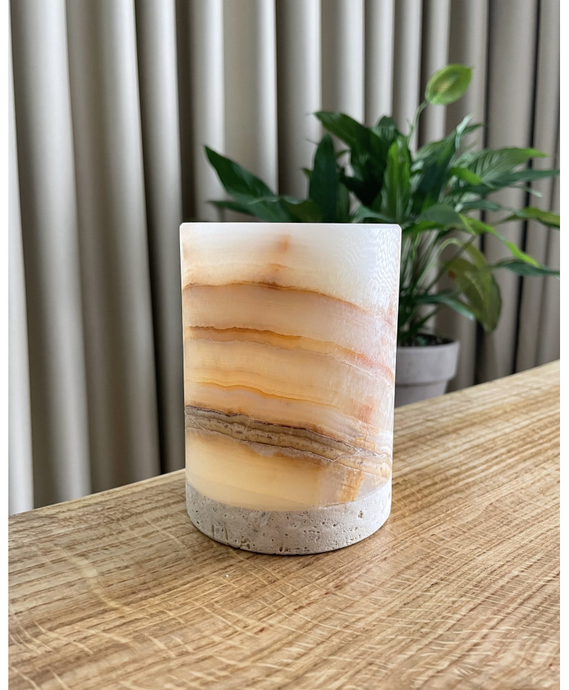 Bring a touch of luxury into your home with our unique natural onyx candle. Each piece is unique – handmade from real stone, which delights with its natural patterns and colors.