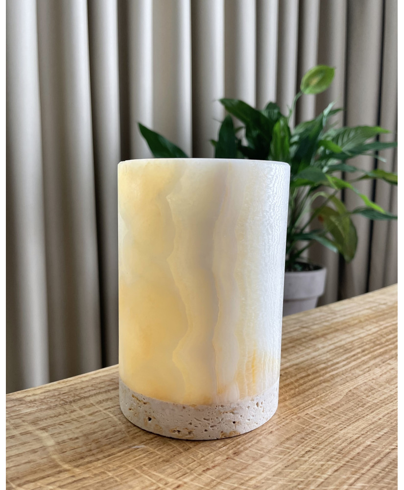 An onyx candle is a luxurious and stylish decorative item that catches the eye with its natural beauty and unique stone pattern. Onyx, known for its characteristic layers and translucency, perfectly diffuses the light of the flame, creating a warm, atmospheric aura.