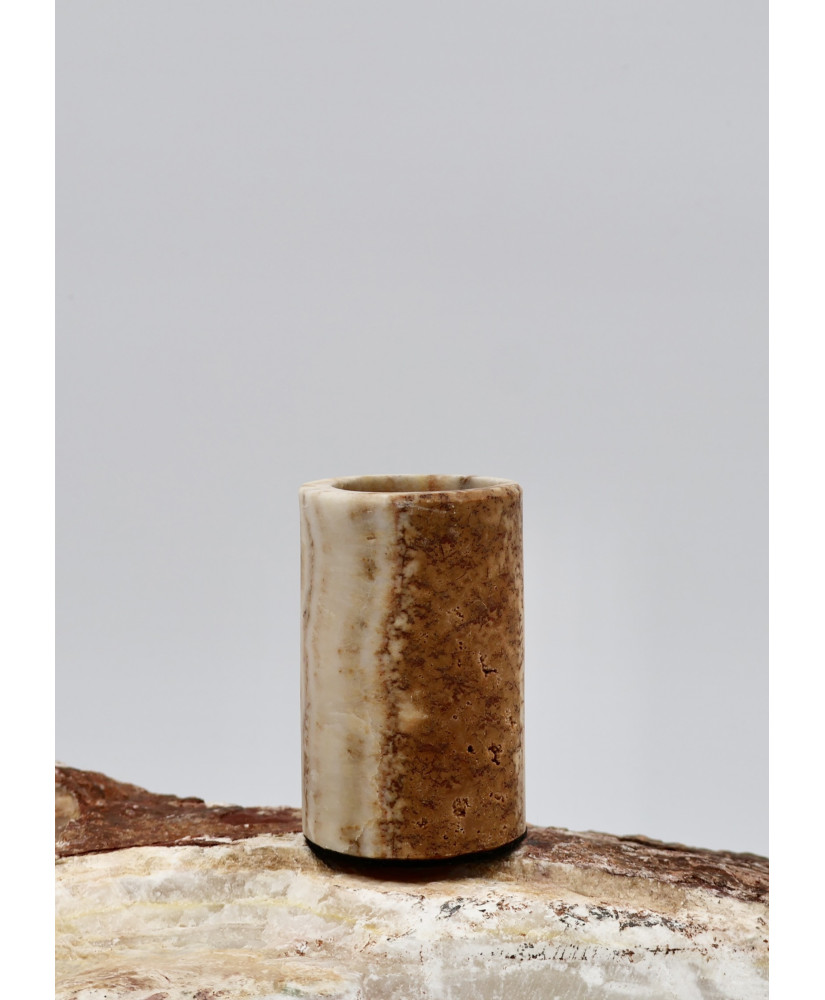 • Form: stone cylinder with a wax candle inside (filled with a reusable tealight candle).