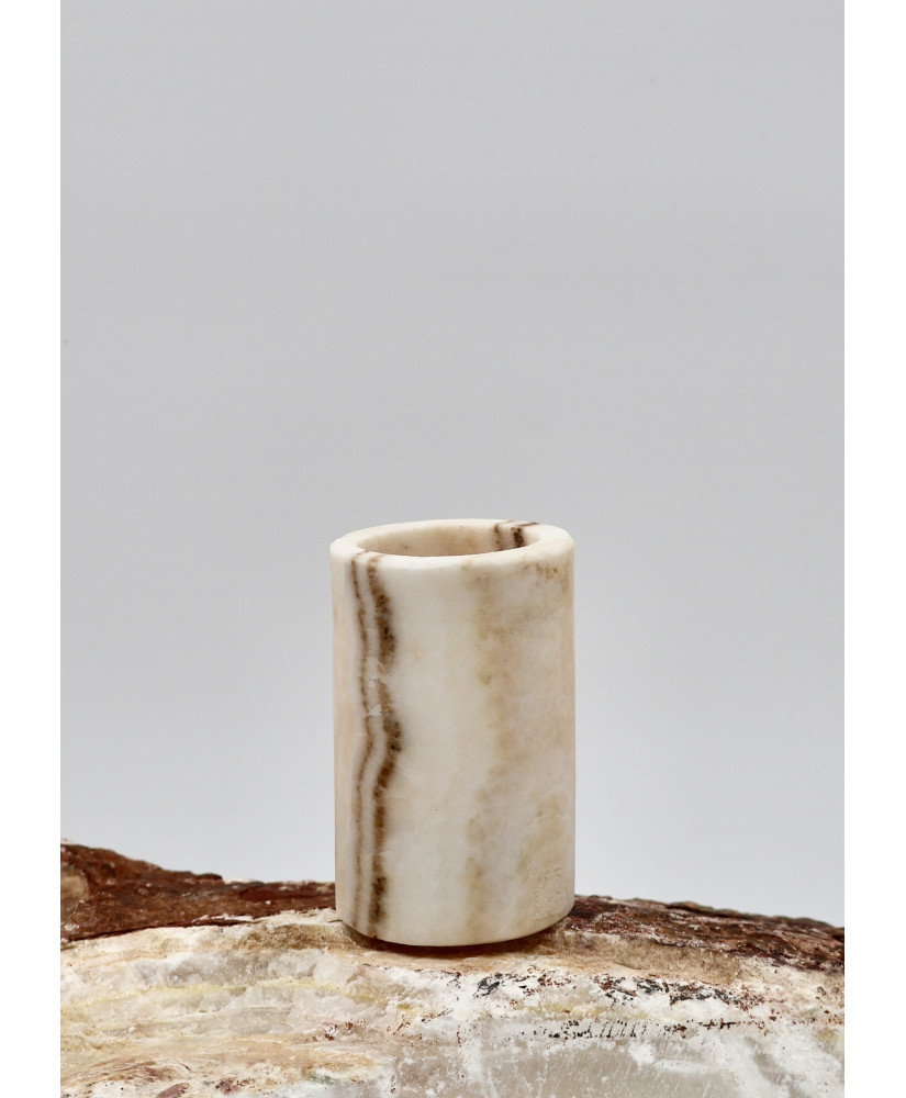 • Form: stone cylinder with a wax candle inside (filled with a reusable tealight candle).
