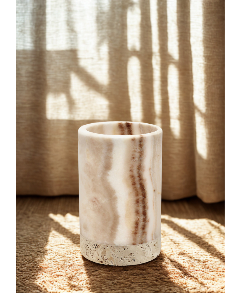 Onyx candle holder is a luxurious and stylish decorative piece that captivates with its natural beauty and the stone’s unique pattern. Onyx, known for its distinctive layers and translucency, beautifully diffuses the light of the flame, creating a warm, atmospheric glow.