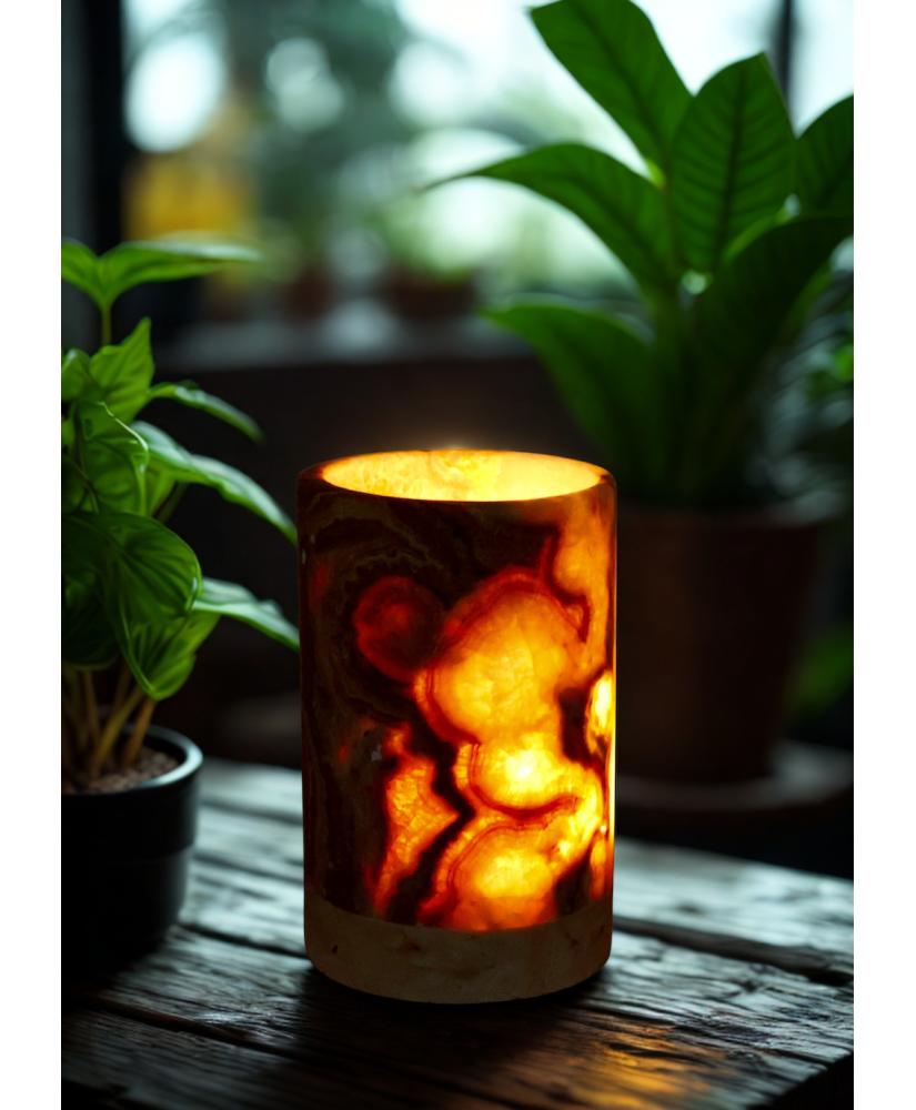 Bring a touch of luxury into your home with our unique natural onyx candle holder. Each piece is one-of-a-kind—handcrafted from genuine stone that captivates with its natural patterns and colors.