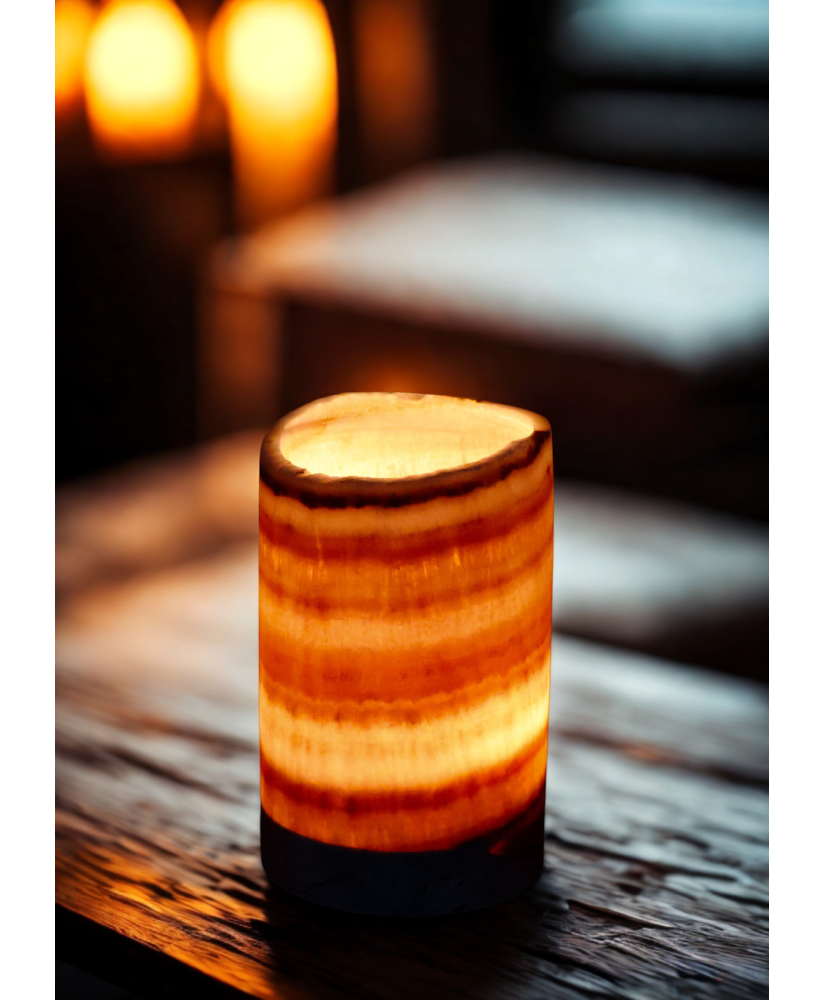 Bring a touch of luxury into your home with our unique natural onyx candle holder. Each piece is one-of-a-kind—handcrafted from genuine stone that captivates with its natural patterns and colors.