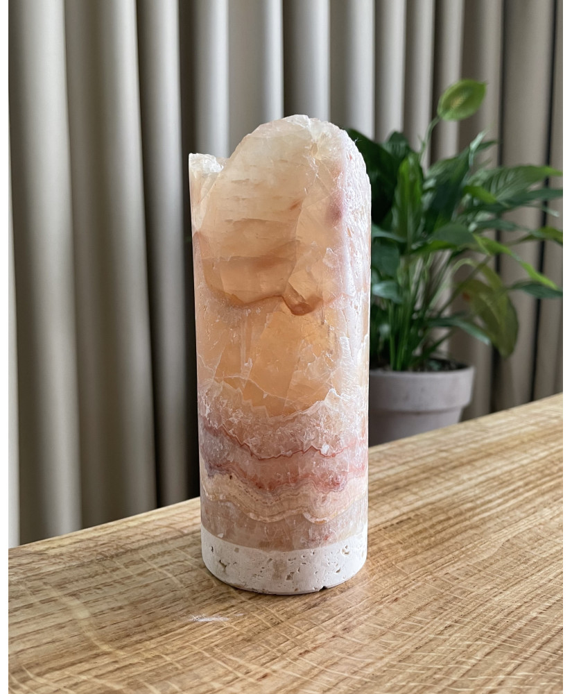 Świeca z onyxu to luksusowy i stylowy element dekoracyjny, który przyciąga wzrok naturalnym pięknem i unikatowym wzorem kamienia. Onyx, znany ze swoich charakterystycznych warstw i półprzezroczystości, doskonale rozprasza światło płomienia, tworząc ciepłą, nastrojową aurę.